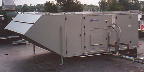 This Greeneck model TSU-220-H40 moves 27,500 cfm of outside air into a southern Indiana manufacturing facility.