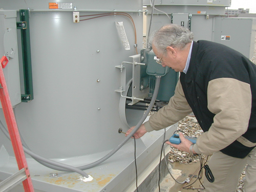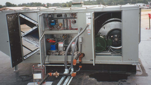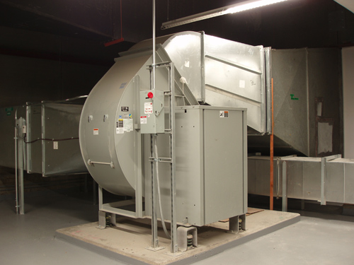 "Look Under the Hood" This Greenheck model TSU includes a filter section, twin FC blowers, Maxitrol 44 controls and variable frequency drive to control the 25 HP fan motor.