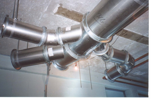 This duct is made from 316 stainless steel. The duct is rolled and welded. The angle rings were provided fully welded to the pipe ends and factory van-stoned on the fitting ends