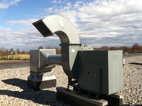 Greenheck SBE-48 mounted on base with rollers
