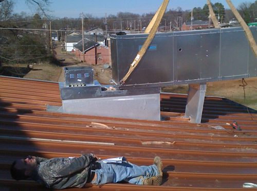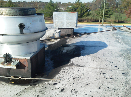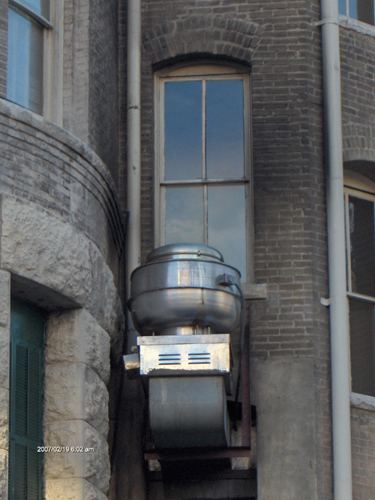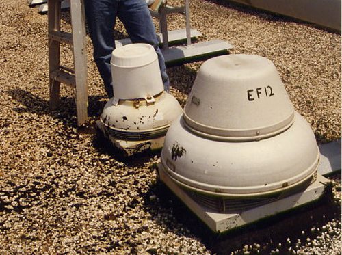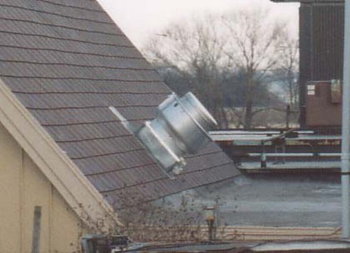 Here is a roof fan mounted on an extended, angled, non-vented, curb/sleeve/duct. You won't see this in NFPA. Not only will this fan fail in a fraction of its normal life, this is a fire hazard.