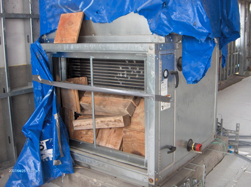 They should have used a real sloped curb. Tilting a roof mount fan greatly reduces bearing life and structural integrity.