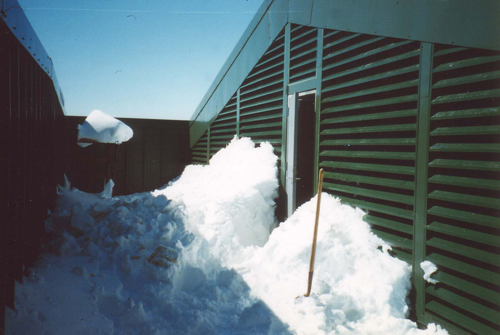 Most louvers will not pull in rain if the inlet velocity is less than 850 fpm. No guarantee is made however for 4 ft. tall snow banks.